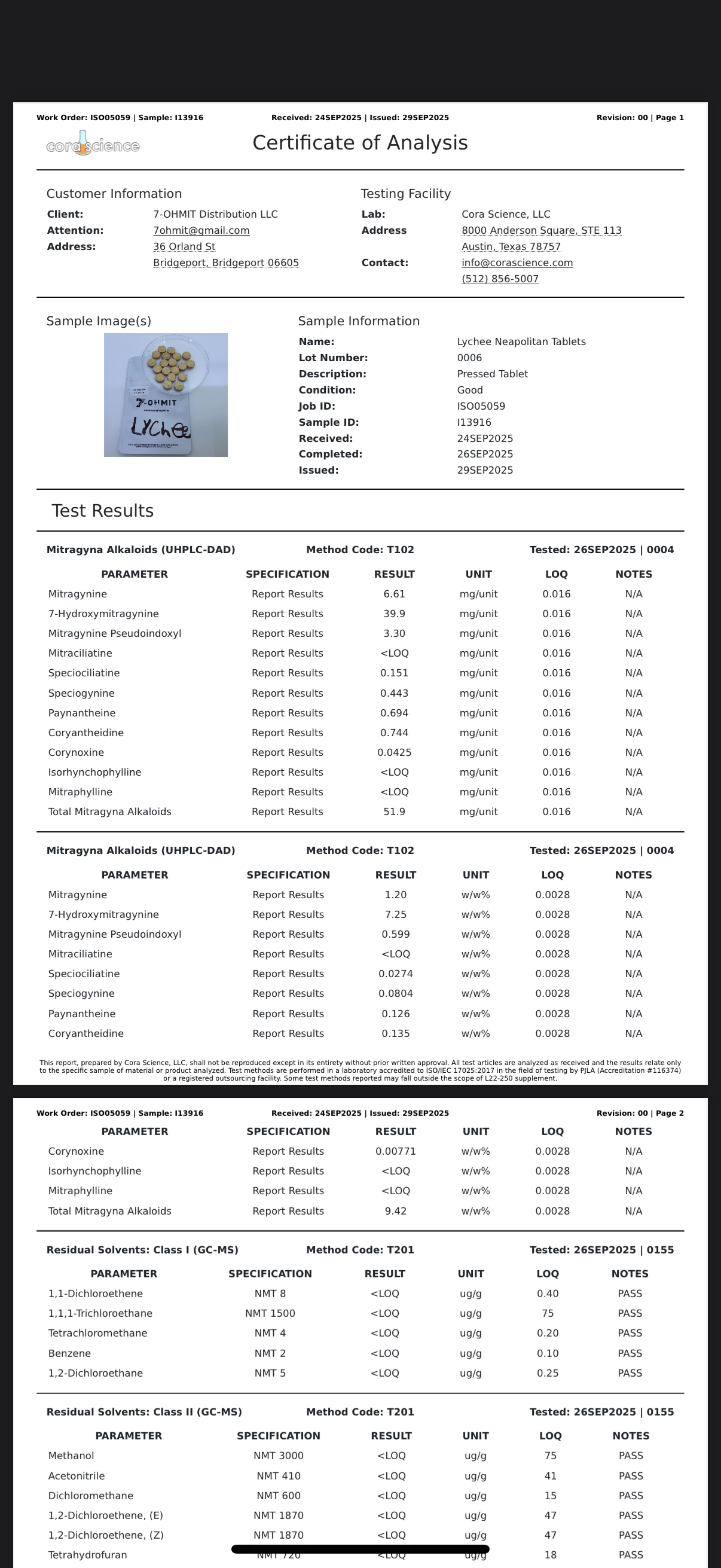 Lychee 40mg 7OH/6.6mg MIT/3.3mg Pseudo Tablets